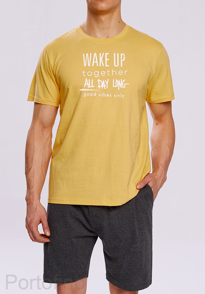 Мягкая, летняя пижама из качественного хлопка футболка с коротким рукавом и шорты однотонные.