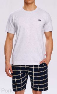 Прекрасная мужская пижама из хлопка которая состоит из футболки с коротким рукавом и хлопковых шорт в клетку. Отличный вариант домашней одежды на лето.