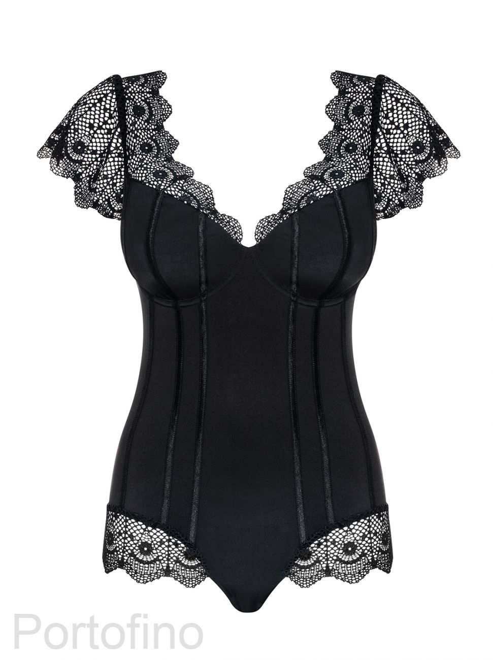 Obsessive стильное черное боди из мини коллекции Moketta , декорировано нежным кружевом. Новинка 2017 года.