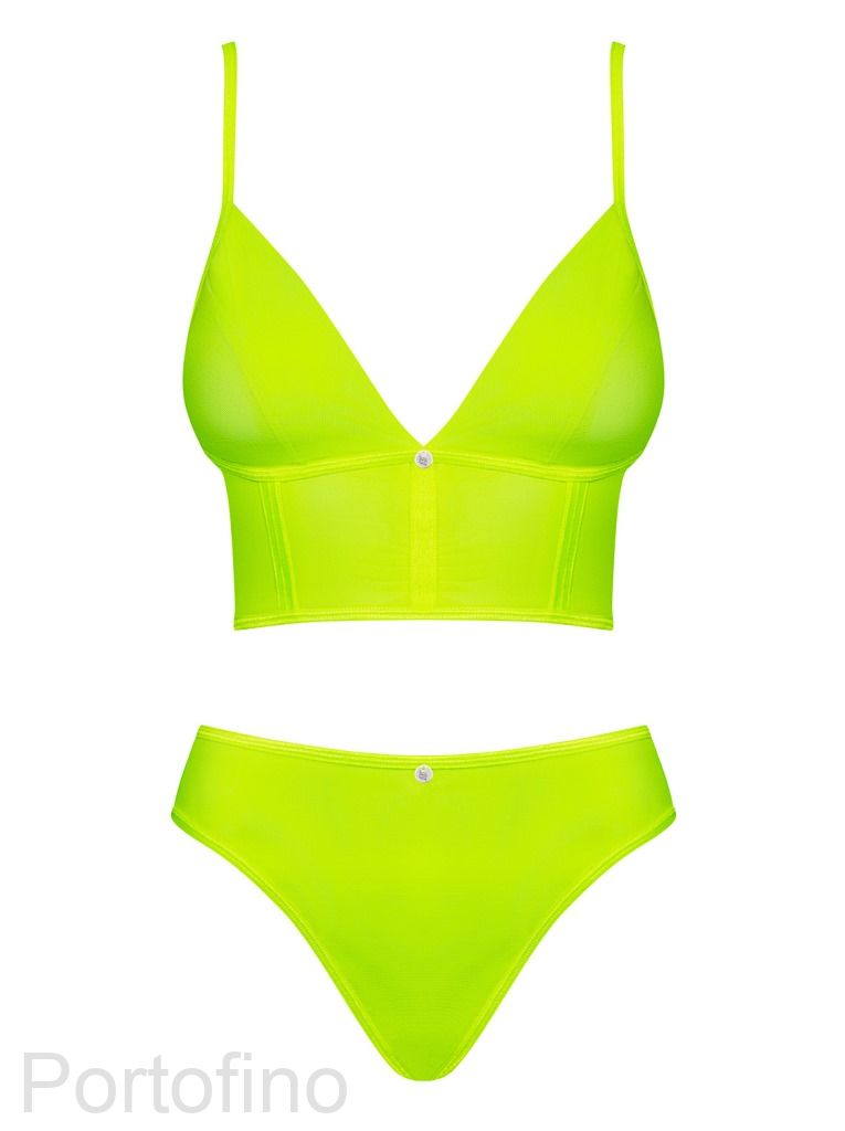 Комплект белья из серии Neonia: полукорсет с мягкими чашечками, на тонких регулируемых по длине бретельках, на спине декоративная молния. Трусики панти в комплекте.