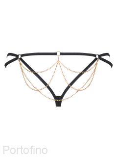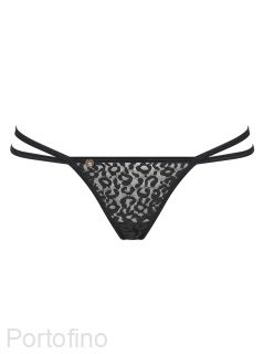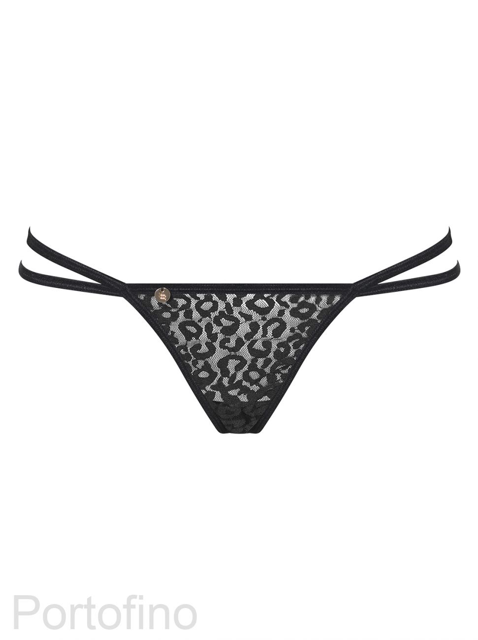 Соблазнительные трусики стринги из коллекции Pantheria из вуали с леопардовым принтом на двойных эластичных союзках, спинка открыта, украшена съёмными цепочками.