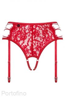 Оригинальная модель 2 в 1 из коллекции Rediosa: пояс для чулок и стринги из кружевного полотна, по бокам тонкие союзки, снабжён пажами для чулок и активным вырезом.