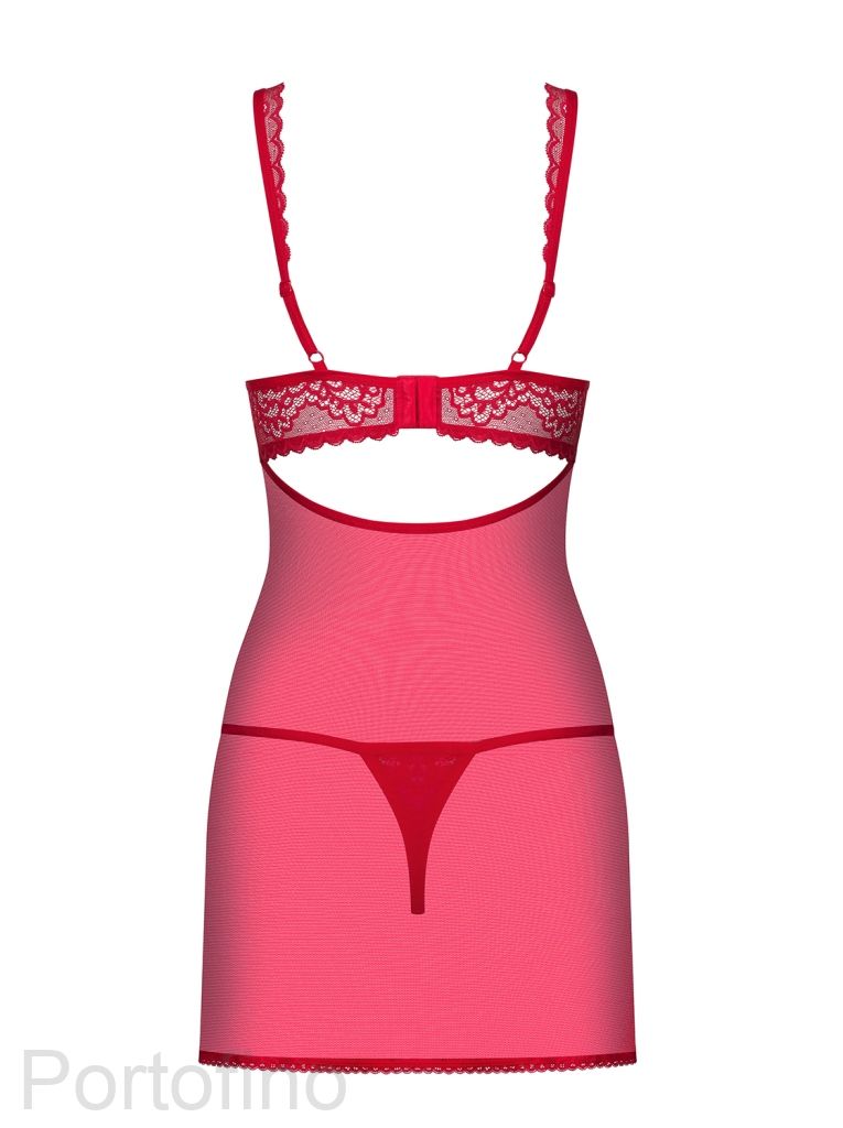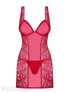 Сорочка для девушки из коллекции Rougebelle Obsessive из прозрачной красной вуали и кружева. Чашечки мягкие, кружевные, на косточках, бретельки регулируются по длине, на спине застёжка-удлинитель на крючках. Сорочка комплектуется трусиками стрингами