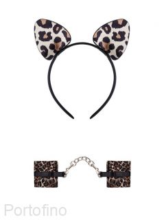 Комплект для ролевых игр Tigerlla Дикая кошка : ободок с ушками, наручники, соединенные съемной цепочкой.