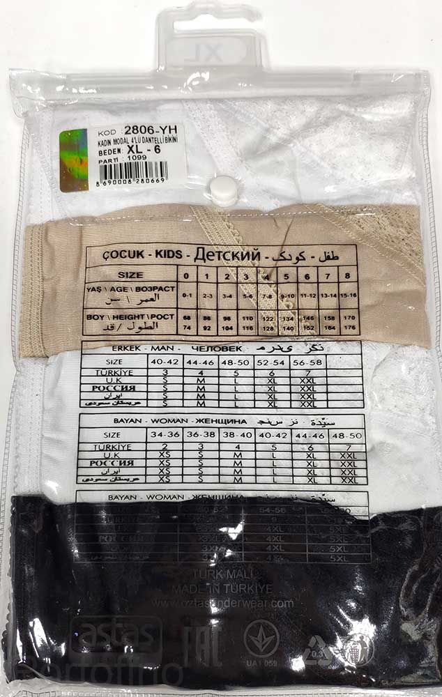 Размерная сетка женского белья Oztas